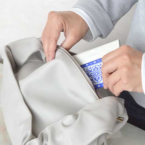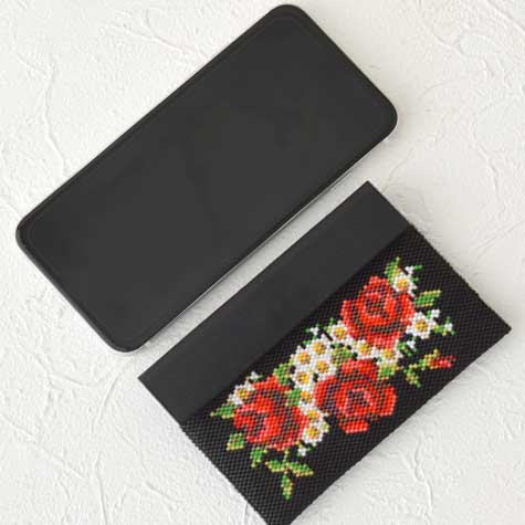 バッグから取り出すとき、ペヨーテステッチならではの繊細な模様がそっと目を引き、手もとを上品に彩ります。