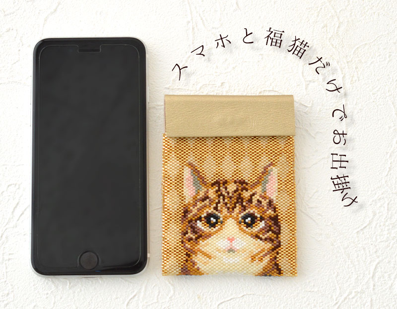 縁起の良い猫「ハチワレ」…顔のハチワレ模様が漢字の「八」に似ていることから縁起の良い猫といわれるようになりました。「福ねこ」と呼ばれることも…。そんなハチワレにあやかり福ねこ模様を両面に!片面には、ニッコリほほ笑み顔のキジトラハチワレ。反対側には、ジト目も可愛い白黒ハチワレ。Wハチワレに見つめられて持っているだけでほっこり幸せになりそうですね!ベース模様にはダイヤ柄を連続模様で入れ、金運も上がるかも?ケースの向きが縦型で、見た目がスマートな収納です。