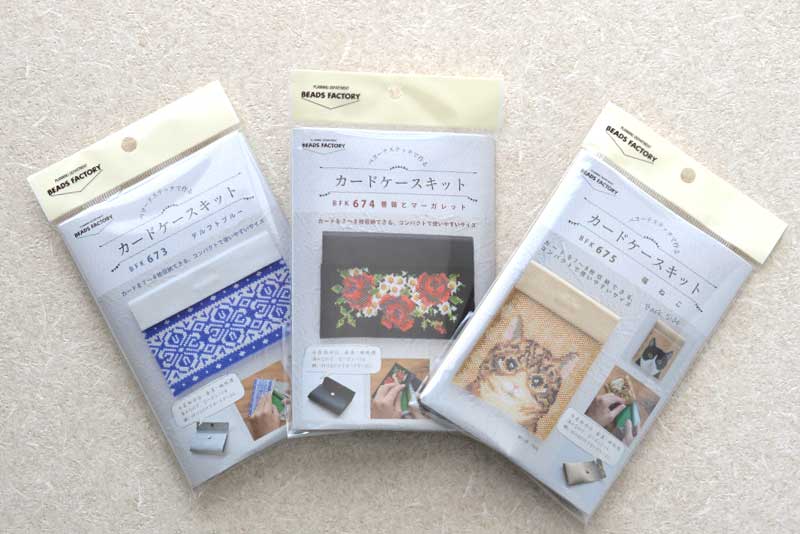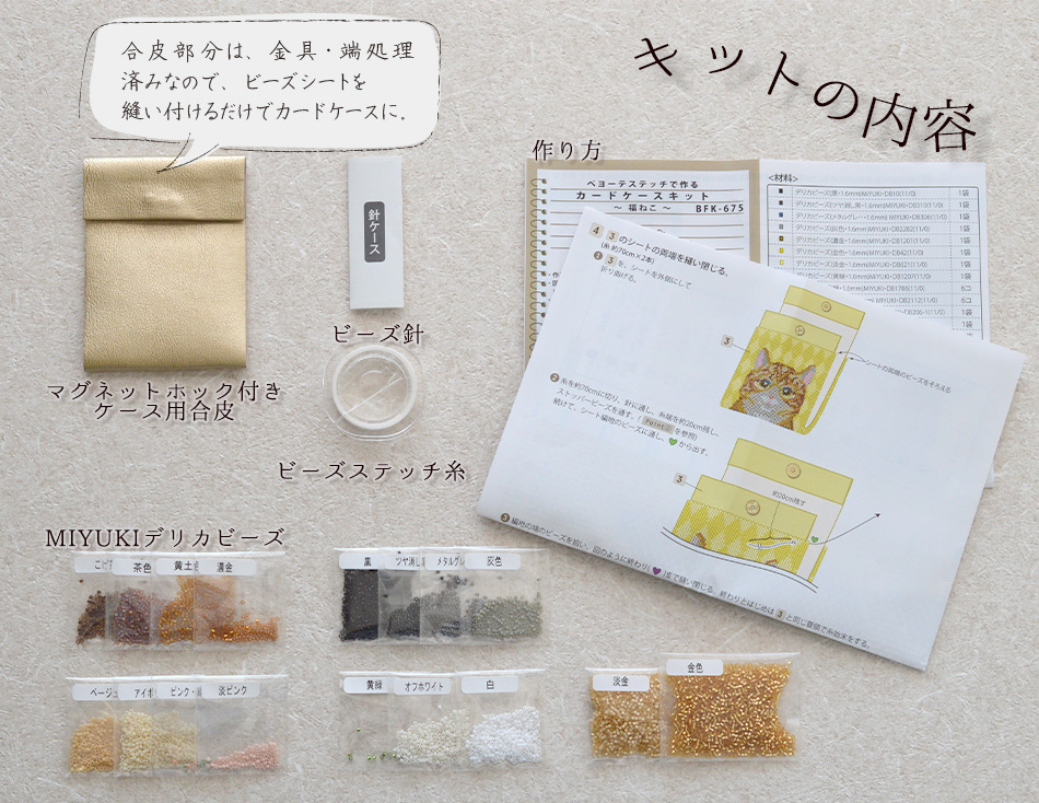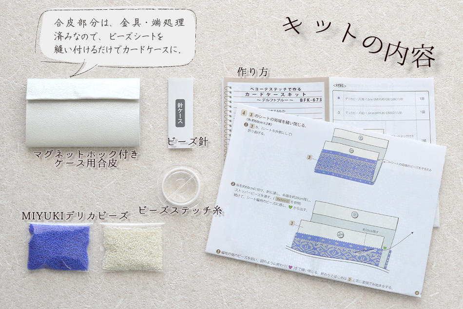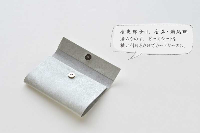 手のひらサイズのカードケースに、ビーズシートを縫い付けるだけで完成するシンプルな基本構造です。