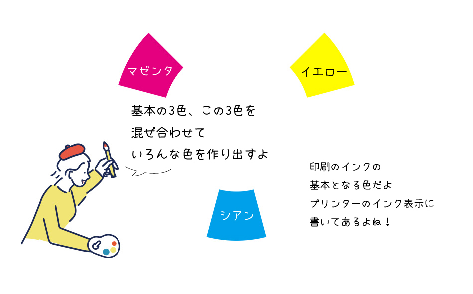 トライアングルカラー シアン・イエロー・マゼンダ パレット