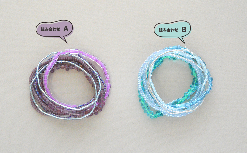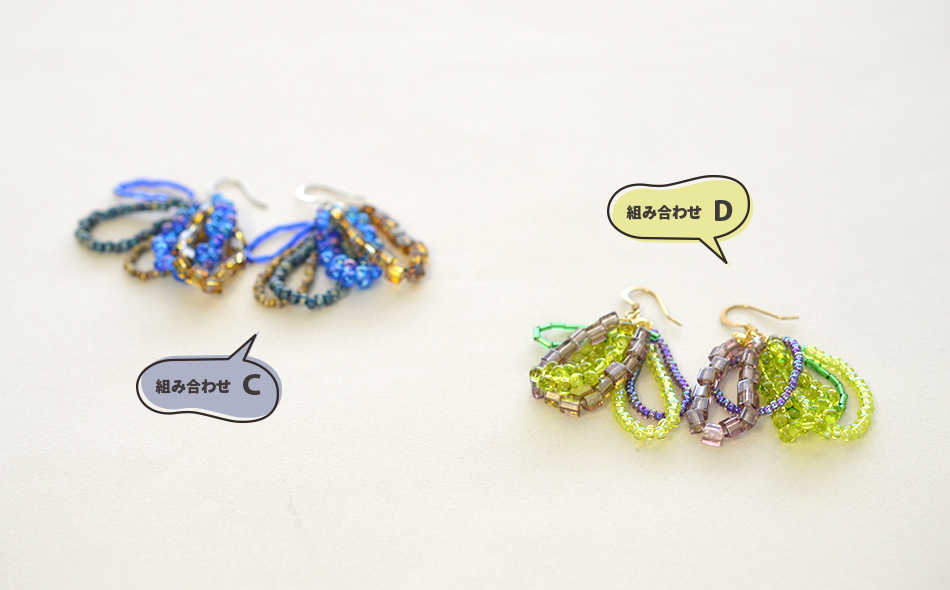 他のビーズセットを使えば、またひと味違った雰囲気の作品が楽しめます。お気に入りの色を自由に組み合わせて、自分だけのオリジナルアクセサリーを作ってみませんか?
