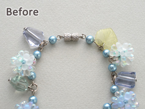 留め具がマグネットクラスプの場合は外れてしまう可能性があるので、しっかり留まるカニカンやマンテルに付け替えると安心です。