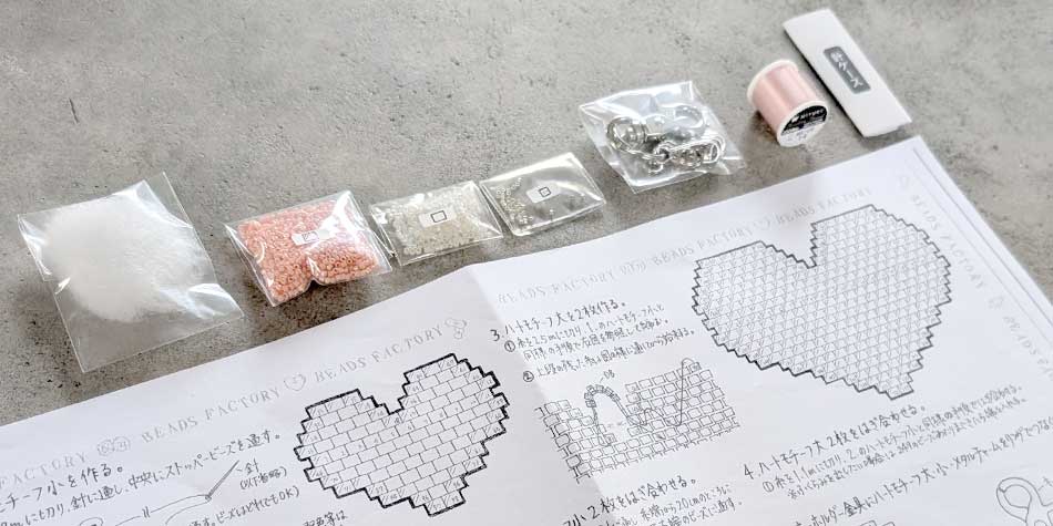 直接会話ができる店舗だからこそ生まれる、福山店ではファンの多いビーズキットです。店頭には、オンラインショップに無いビーズキットもございますので、お気軽にスタッフにお尋ねくださいね。