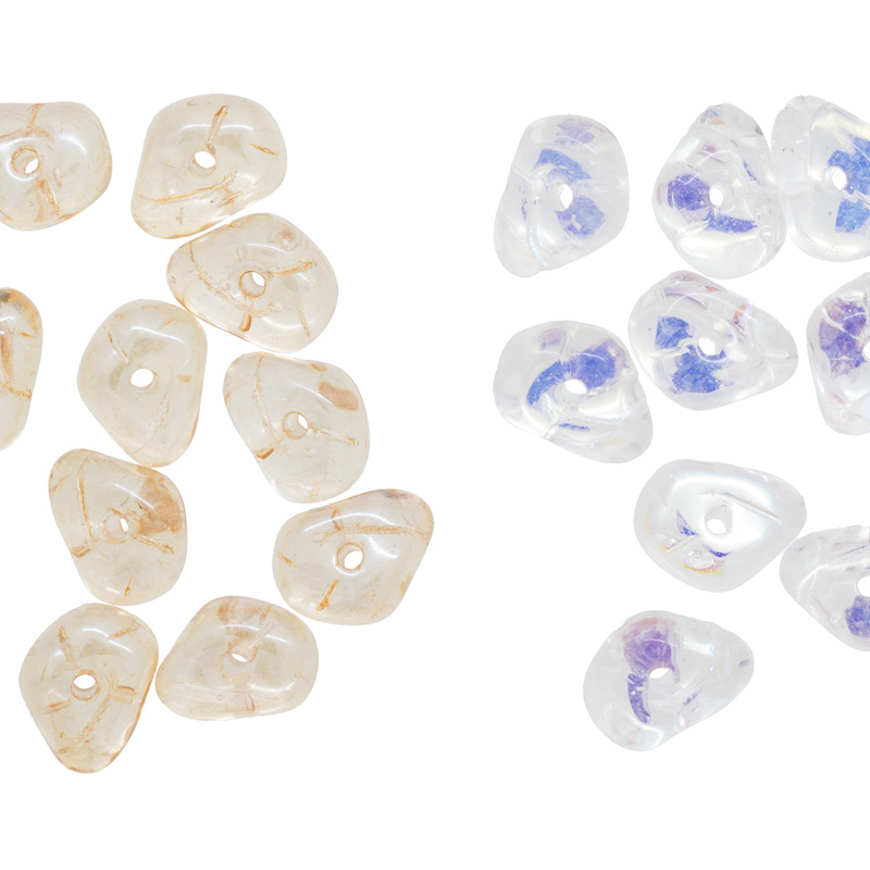 プラスチックビーズ(K4762/#1)に丸大ビーズ 8/0(#143)・グラスチップ(G2113/#40011)、(G2115/#00030AB)を下図のように巻き付けて、モチーフを作る。