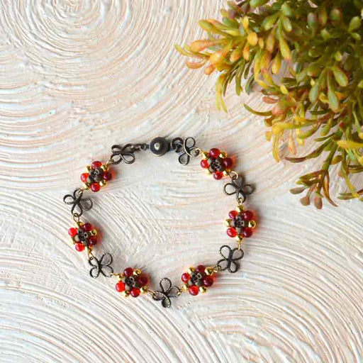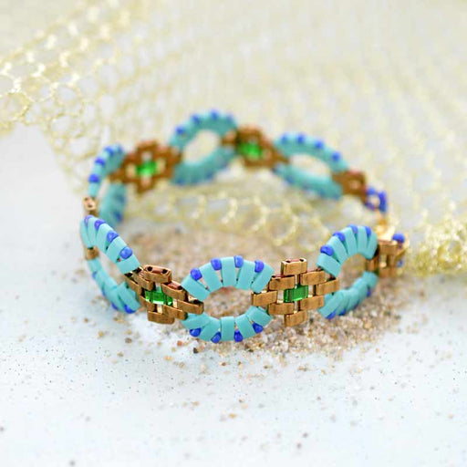 繊細な模様が施されたメノーニ社メタルパーツと、MIYUKIシードビーズで作るモチーフを組み合わせたブレスレットです。アンティーク調のメタルパーツと、MIYUKIビーズのカラーがマッチしたブレスレットは、お洒落のアクセントにおすすめのアイテムです。特集ページはこちら