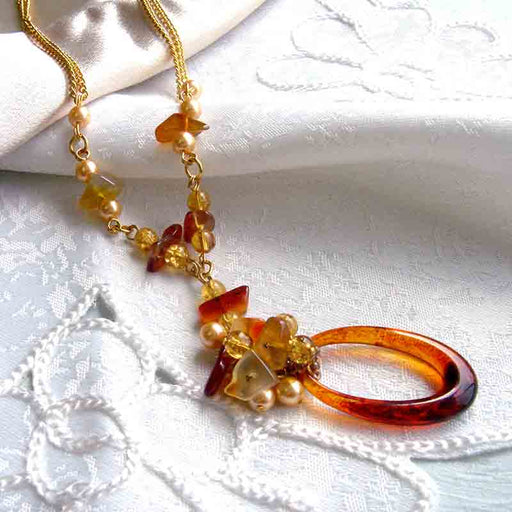 人気のカーネリアンを同系色のカラーでまとめ、べっこう色のプラスチックビーズをポイントにした、お洒落なグラスホルダー。カーネリアンには大切な人との絆。愛と喜びの意味もあるそうです。ホルダーにメガネをかけておけば、忘れてしまう心配も無くなる便利なアイテムです。そのままネックレスとして使用しても素敵...