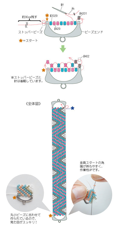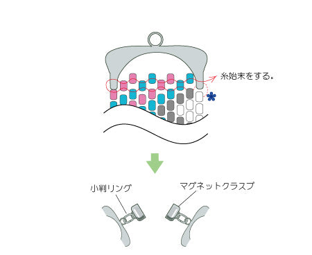 丸小ビーズのサイズにピッタリ合うビーズエンドが登場!金具の両端が丸小ビーズと同じ役目をしてくれるので、ステッチをした際キレイに端が揃い仕上がりもスッキリです。お好みの丸小ビーズで、ペヨーテステッチやスクエアステッチ等…色んな作品作りに使ってくださいね。