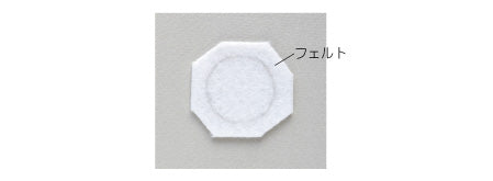 糸や玉結びが、フェルトの端にこないように注意してください。分かりやすくするために、イラストでは糸の色を変えています。
