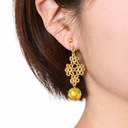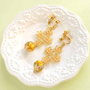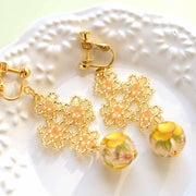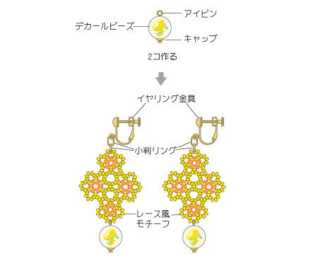 レース風モチーフとデカールビーズのイヤリング