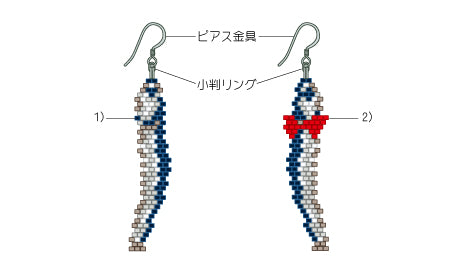 シェイプドステッチで作る煮干しカップルピアス