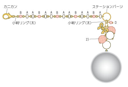ステーションパーツ・カニカン・小判リング(太)・2)をつないで出来上がり。