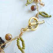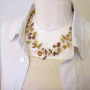 デザインミックスビーズを使い、ワイヤーをねじりながら作るネックレスです。ボリュームのわりに軽やかで、アンティークカラーのビーズの落ち着いた雰囲気がとてもすてきですよ。