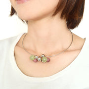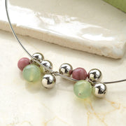 メタルビーズと天然石がコロコロ可愛く揺れるメタルチョーカーです。色んなシーンで活躍する華やかなアクセサリーをお楽しみください。