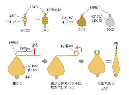 パーツ同士が外れてしまわないように、ピンの輪はキッチリ閉じましょう。