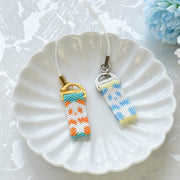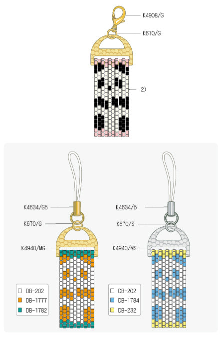 オレンジとブルーはカラーアレンジ作品です。使用したデリカビーズは特集ページからもご確認いただけます。