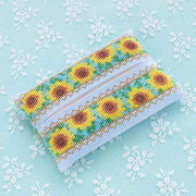 デリカビーズ織りで作る、ポケットティッシュカバーのご紹介です。ミニタペストリーと同じ織機(LM-21またはLM-21R)を使用します。せっかくビーズ織りの素敵な作品が出来たら持ち歩きたいし、更に、飾るだけではなく使えるものだったらもっと嬉しいですよね♪今回は、明るく元気なイメージのひまわりを、上品にゴールドのレースで縁取ったデザインです。