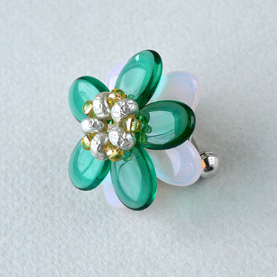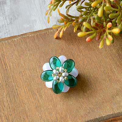 レンティルビーズで作るフラワーブローチ(ティール)