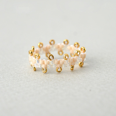 デリカビーズをペヨーテステッチの技法で編んで作る、しなやかな着け心地のビーズリングです。スペーサービーズ(SPR)の縁取りが可愛く手元を彩ってくれますよ。お好きな色のビーズでアレンジ作りもお楽しみください。