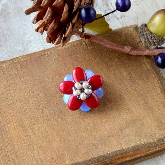 「レンティルビーズで作るフラワーブローチ(レッド)」の材料