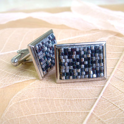 オリジナリティーに富んだ贈り物にデリカビーズ織りで作るカフスボタンはいかがですか?お揃いのネクタイピンでセットにするとさらに素敵です。