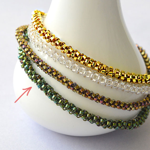 「ライトアングルウィーブで作るロープバングル(グリーン系)」の材料